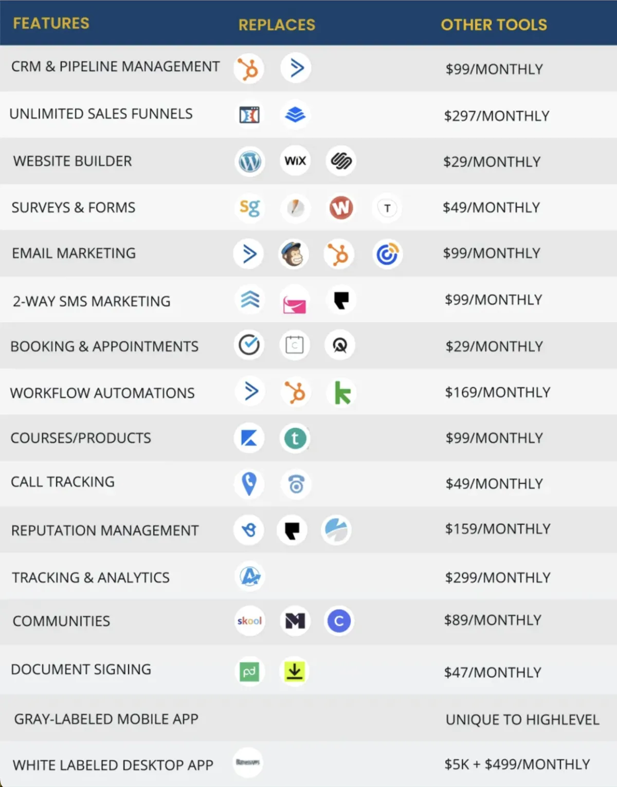 Instantly Replace All The Softwares That You Currently Use To Run Your Business; One Fee for Every Tool Your Business Needs!